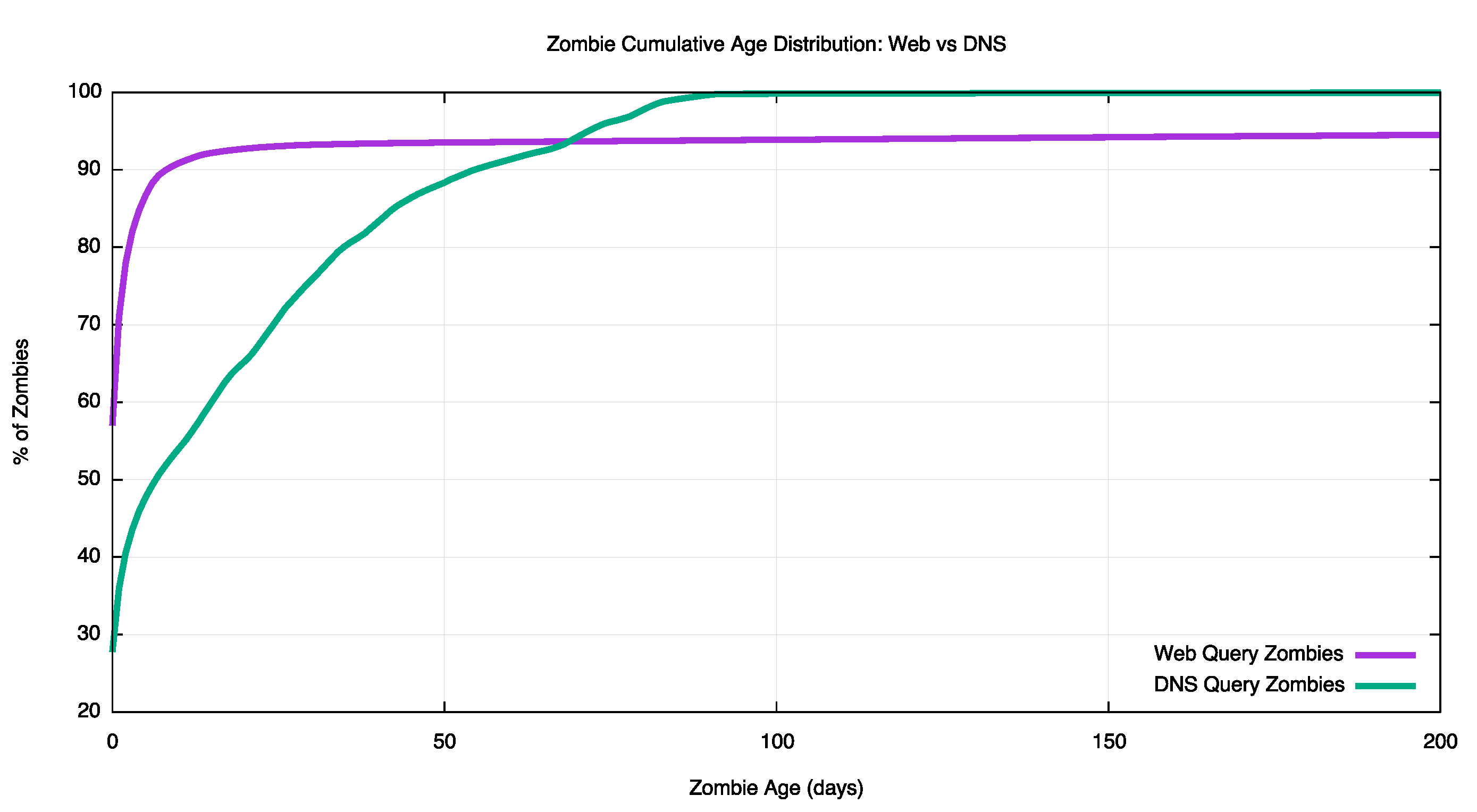 Figure 7 – Cumulative Zombie Age Distribution – Web vs DNS